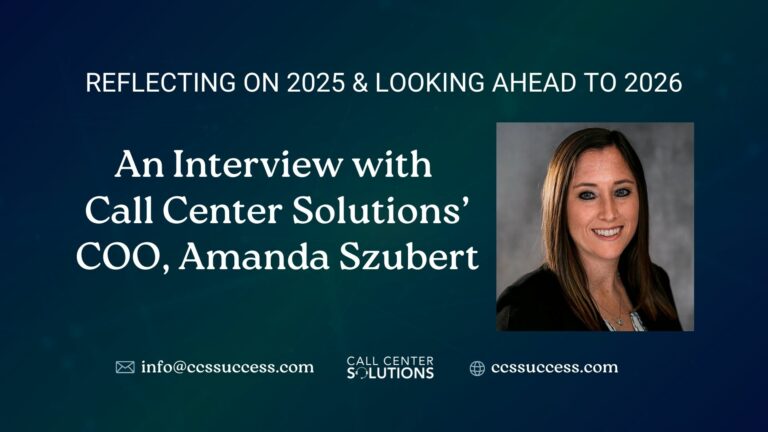 As Call Center Solutions continues to expand and adapt in a rapidly evolving customer service landscape, strategic operational leadership is key. We sat down with Amanda Szubert, Chief Operating Officer at CCS, to reflect on the company’s operational successes in 2025 and to discuss priorities for 2026. From technology and process innovation to workforce optimization and enhancing client value, Amanda shared insights on how Call Center Solutions plans to stay ahead and deliver scalable, high-quality solutions.